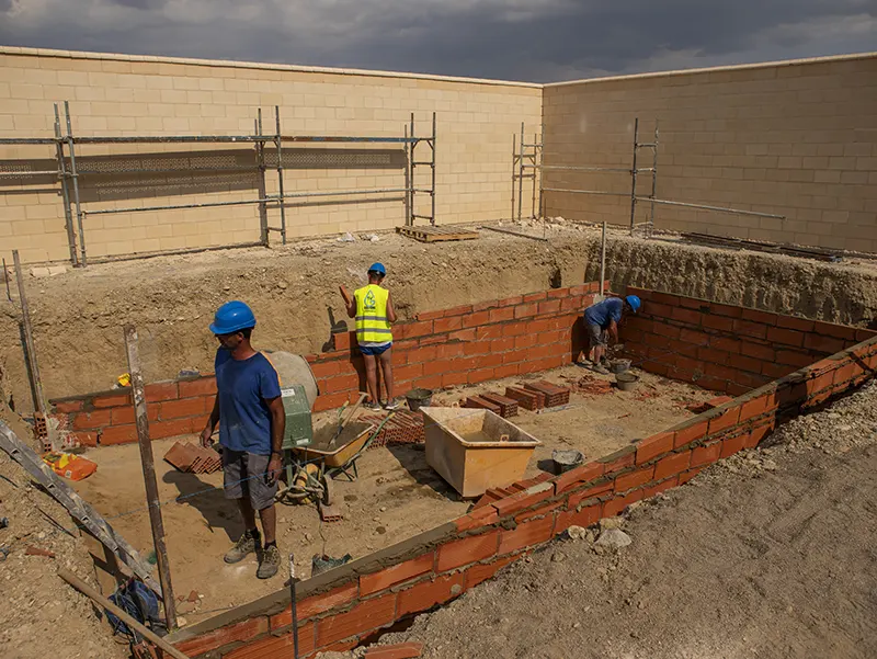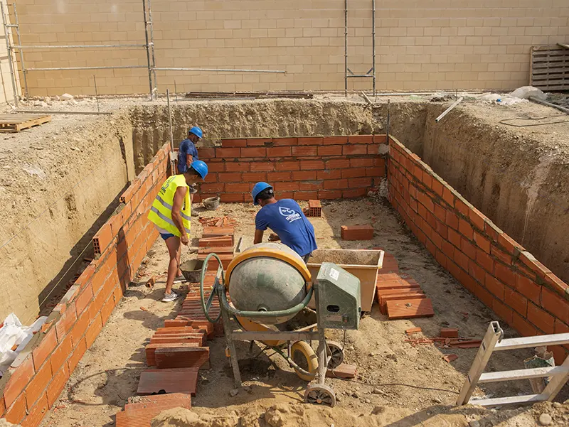 Además dé utilizarse para la realización de túneles y reforzamiento de obras, en los últimos años se ha incrementado el uso de este sistema en la construcción de piscinas ya que es un método muy rápido y útil, cuando las paredes tienen un trazado curvo porque no existen juntas de construcción ni de dilátación consiguiendo mayor estanqueidad. La superficie natural del hormigón proyectado es más o menos rugosa, deperidiendo sobre todo del tamaño del árido grueso utilizado y de la técnica de proyección. Es el propio gunitador el que determina el aspecto del mismo. Pero la propiedad más llamativa de este sistema es una adherencia al soporte de aplicación. La mezcla choca contra el soporte taponando las irregularidades, fisuras y poros.